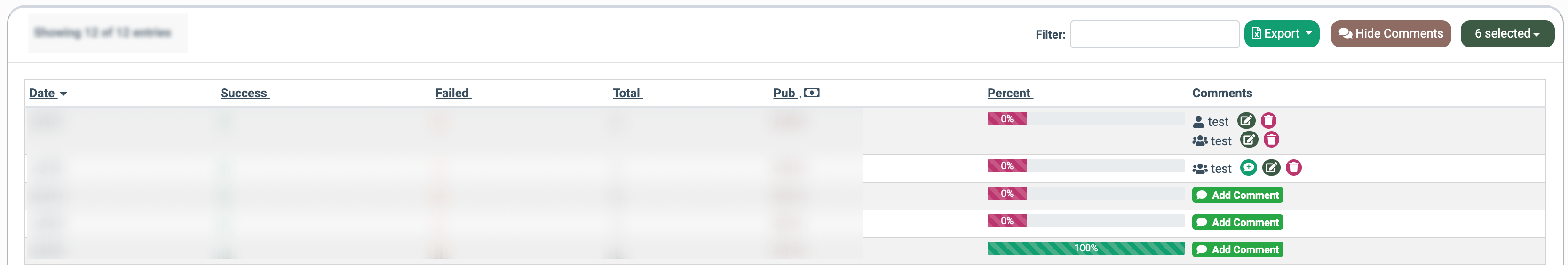 To edit or delete the existing comments from the records, click the corresponding buttons via the “Comments” column.
