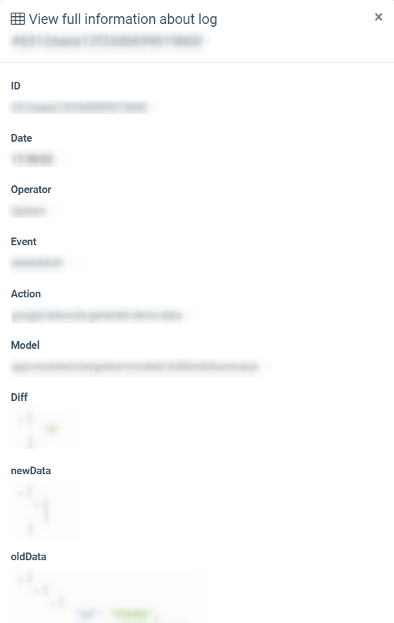 - Diff: The old data that were changed.