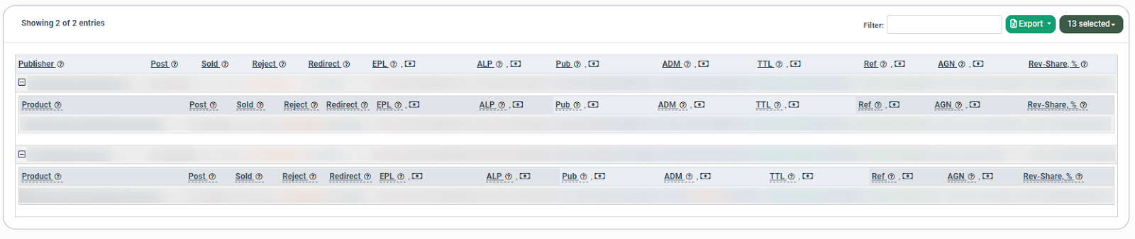 - Publisher: The name of the particular Publisher (available in the “Group by Publisher” and “Do not Group” tabs).