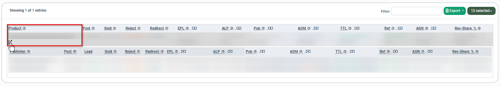 To view the additional information about the lead processing for the particular Product that is grouped by the particular Publishers, select the “Group by Product” tab and click the “+” button in the “Product” field. The summary details that are grouped by Publishers and by the particular selected tag will be displayed in the following collapsible section.