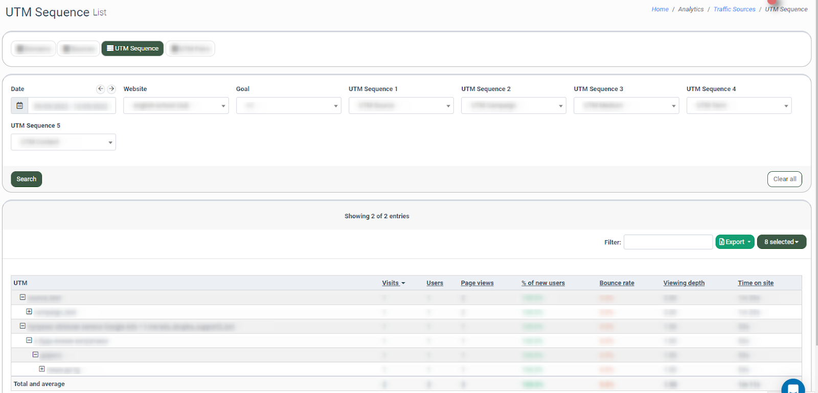 - UTM Sequence 2: Select the second UTM Sequence to be shown. (UTM Source, UTM Campaign, UTM Medium, UTM Term, UTM Content).