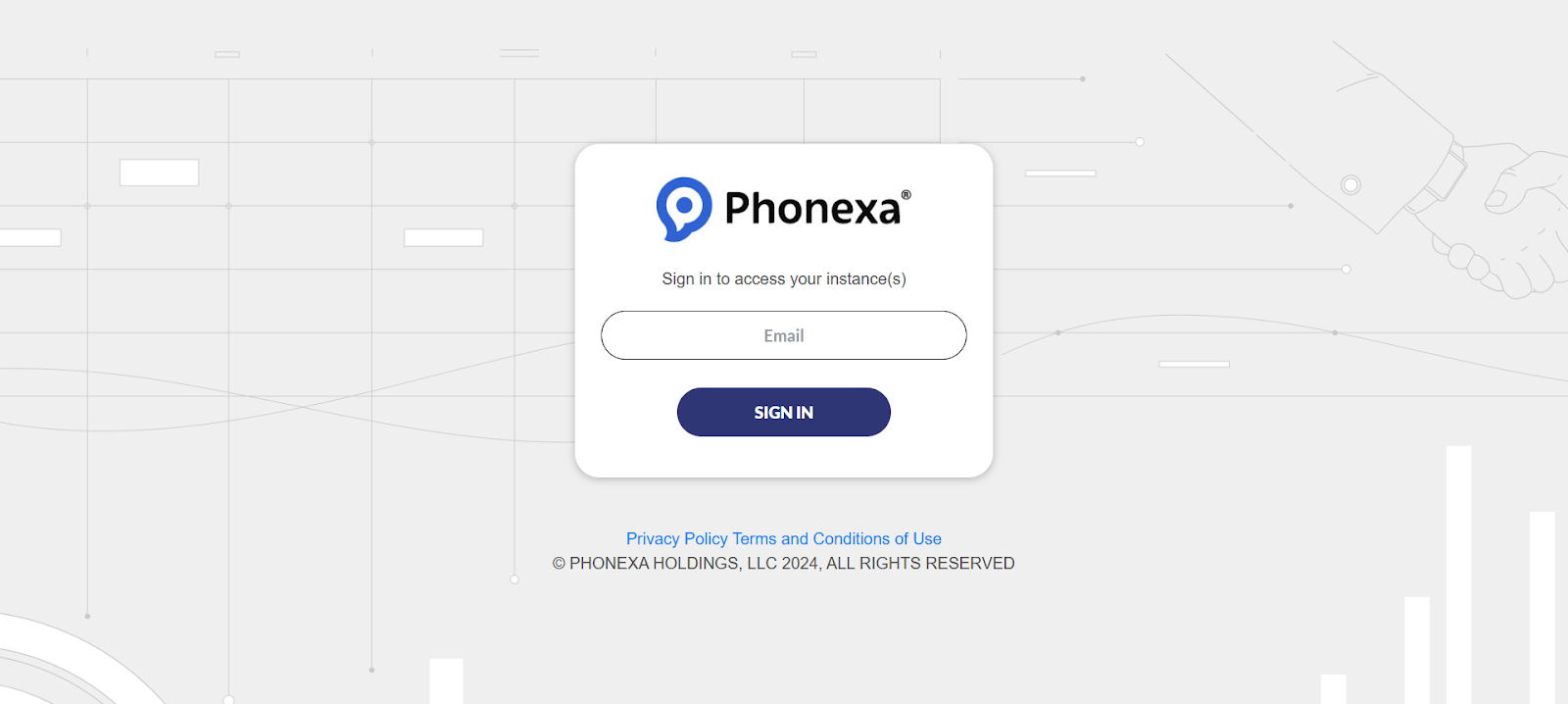 To access the universal login page, visit the website https://phonexa.com/ and select your area (US / UK / CA).