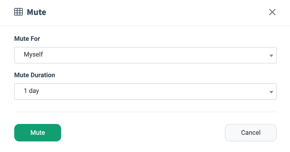 - Mute Duration: Specify how long you would like the warning to be muted.