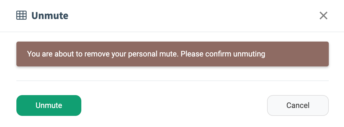 If you need the mute duration to be over, click the “Unmute” button in the “Actions” column. Click the “Unmute” button again to confirm the action.