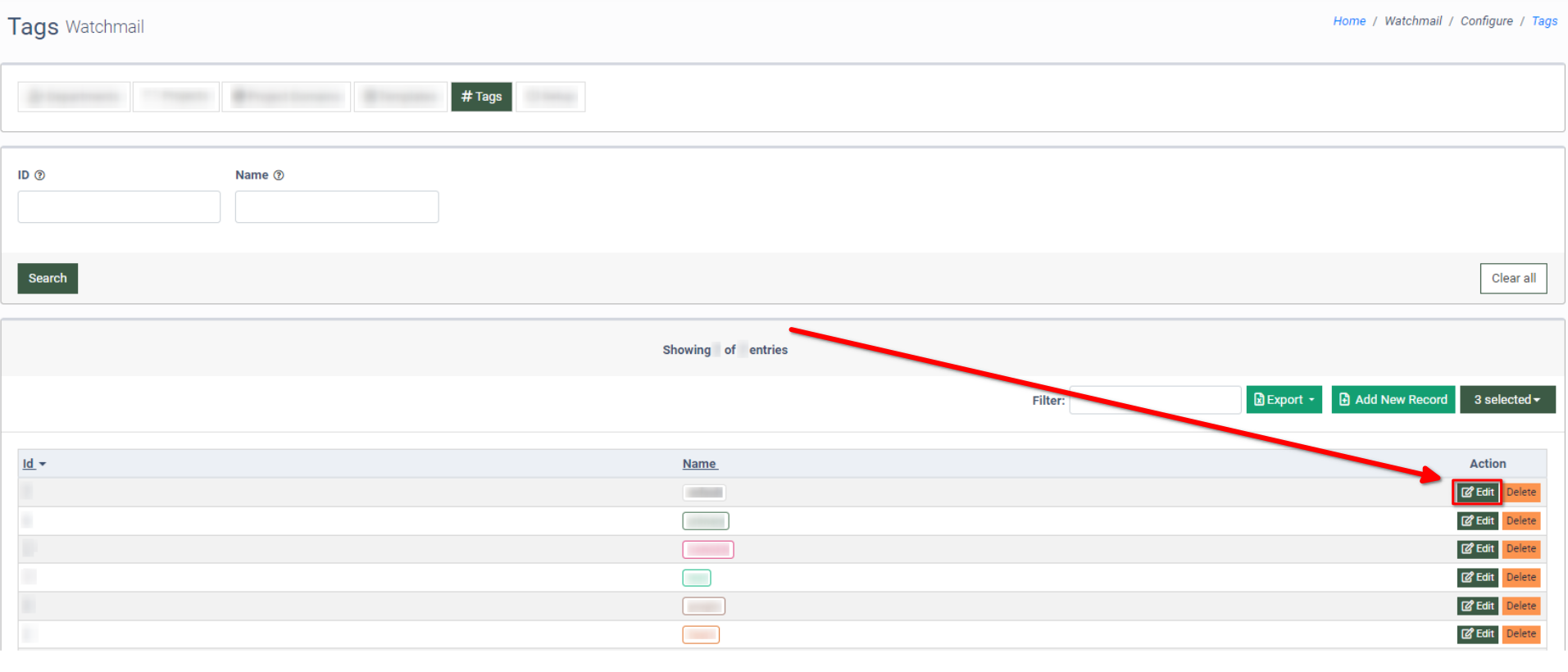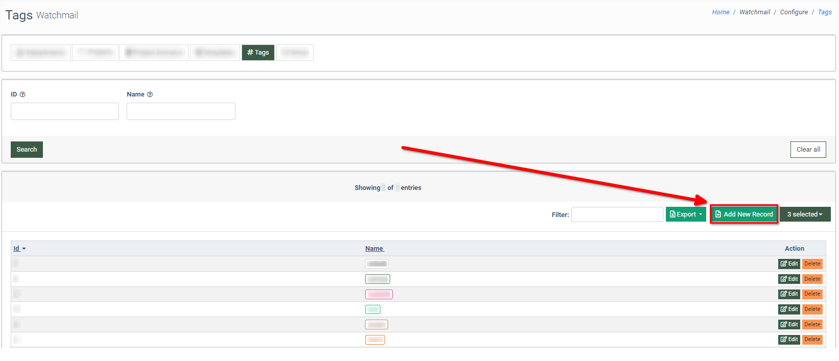 To add a new tag to the list, click the “Add New Record” button.