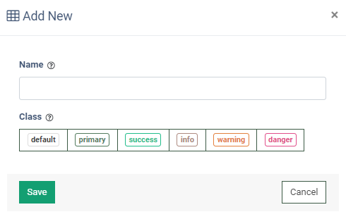 - Class: Select the class from the list (default, primary, success, info, warning, danger).