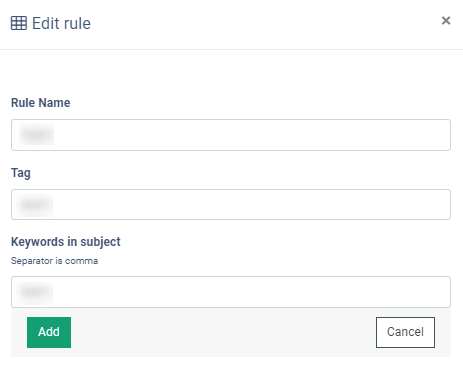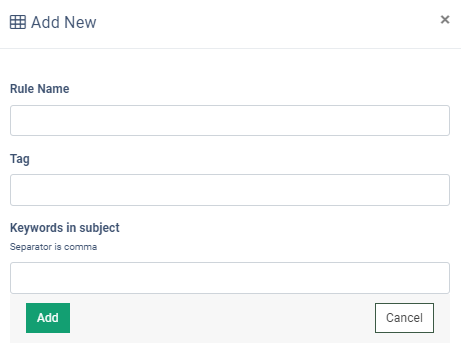 - Keywords in subject: Enter the keywords separated by a comma. Note: The same keyword cannot be used in multiple rules.