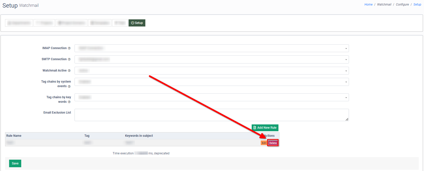 To remove the rule from the system, click the “Delete” button in the “Actions” column.