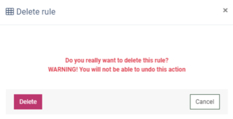 In the “Delete rule” pop-up window, click the “Delete” button to complete the action or click the “Cancel” button to close the window.