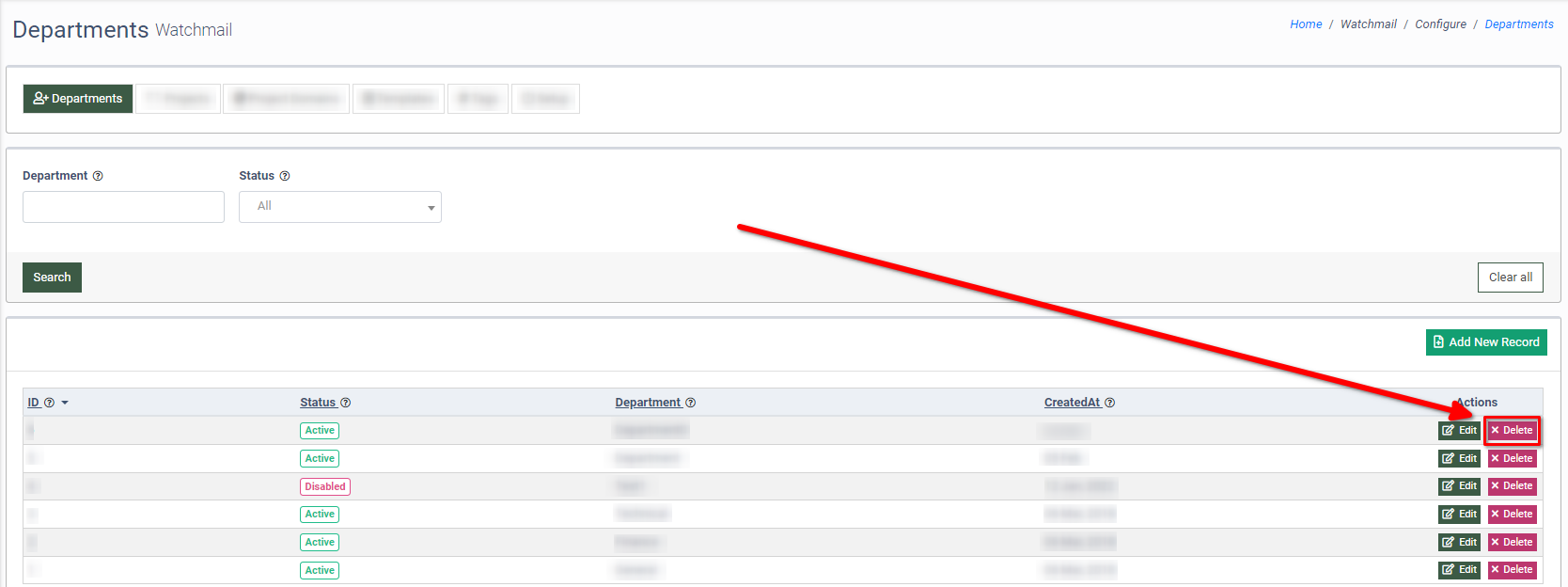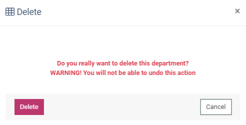To delete the Department, click the “Delete” button in the “Actions” column.