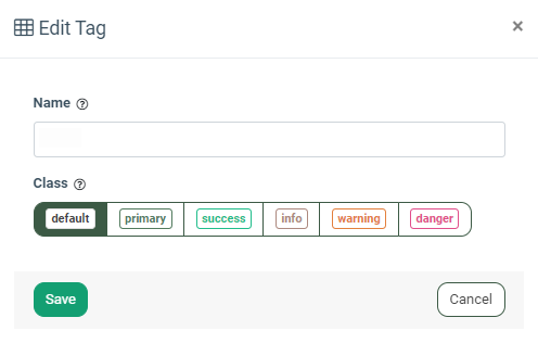 In the “Edit Tag” pop-up window, complete the actions and click the “Save” button to confirm the action or click the “Cancel” button to close the window.