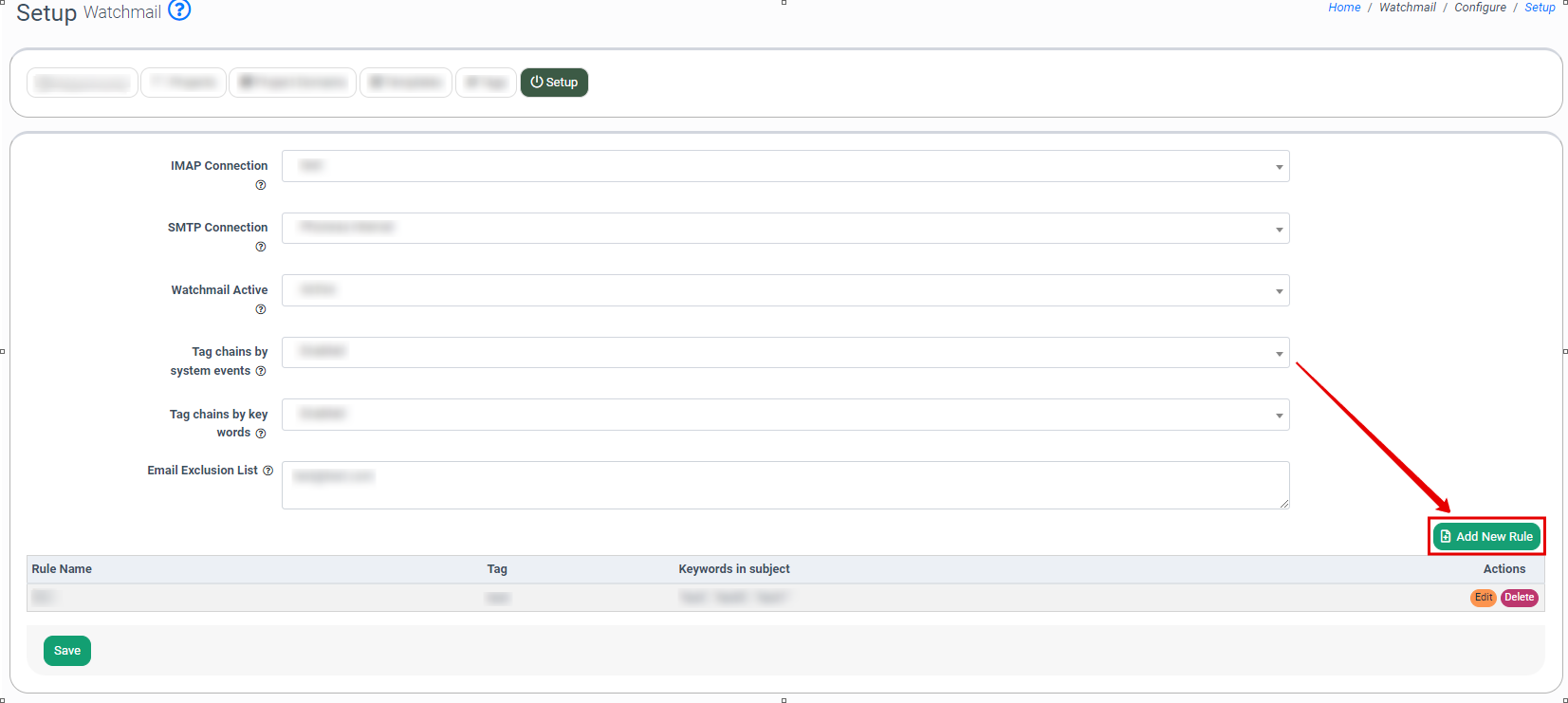 To add a rule, click the “Add New Rule” button.