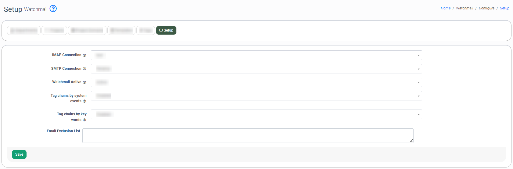 To activate the Watchmail feature and manage the connection settings, go to the “Setup” tab.