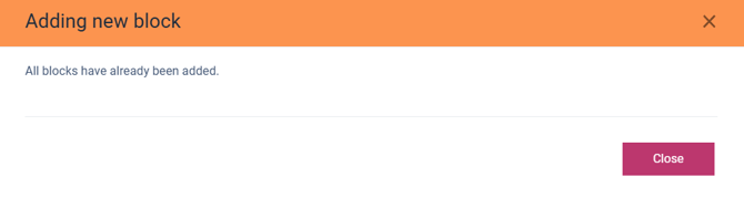 Note that you can add only available blocks. If all available blocks are already added, the following pop-up window will appear: