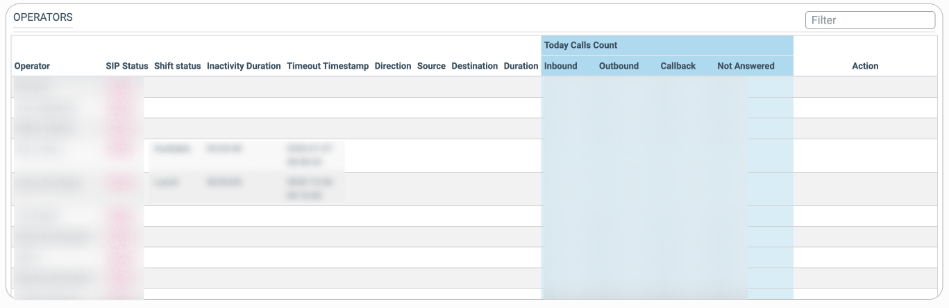 - Inbound: The current number of inbound calls that were received by the particular operator at the current moment.