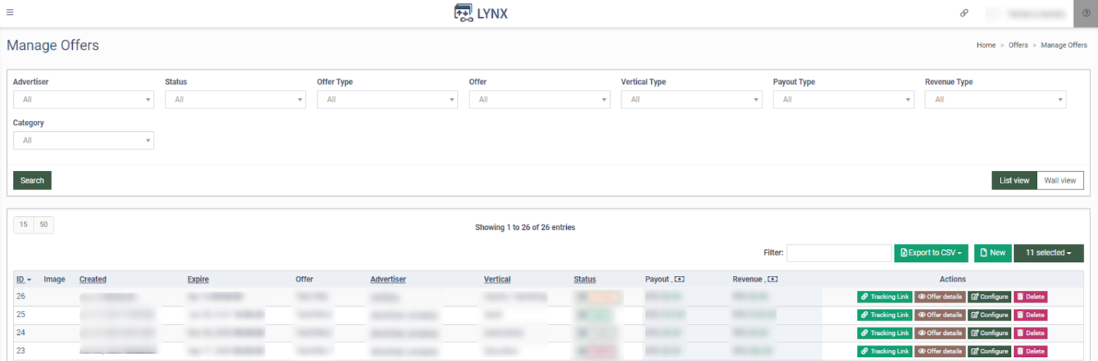 To set up the caps, go to the Offers > Manage Offers section and click the “Configure” button of the corresponding offer.