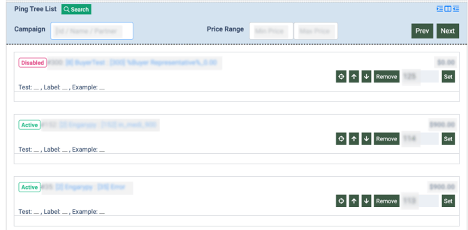 Ping Tree List Configuration