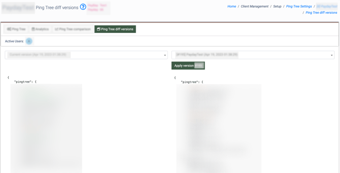 To restore the previously saved backup version of the Ping Tree, click the “Apply version” button.