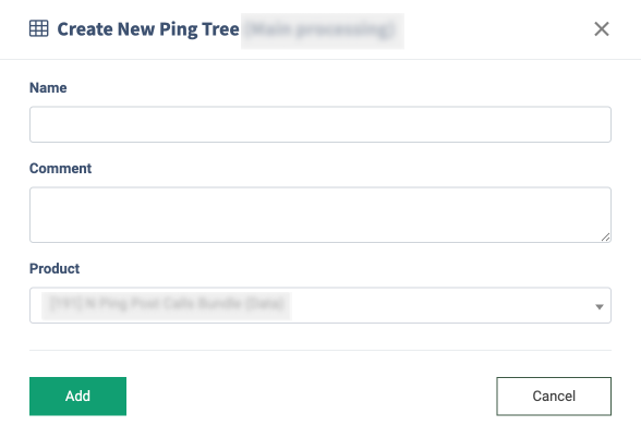 To create a new Ping Tree, click the “Create New Ping Tree” button and fill in the following fields in the pop-up window: