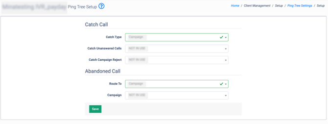 - Catch IVR Reject: Select the Ping Tree. The call will be transferred to the selected Ping Tree when a buyer is not found.