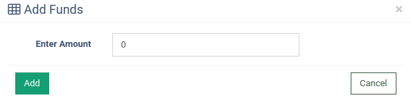 Enter the amount in the “Add Funds” pop-up window and click the “Add” button.