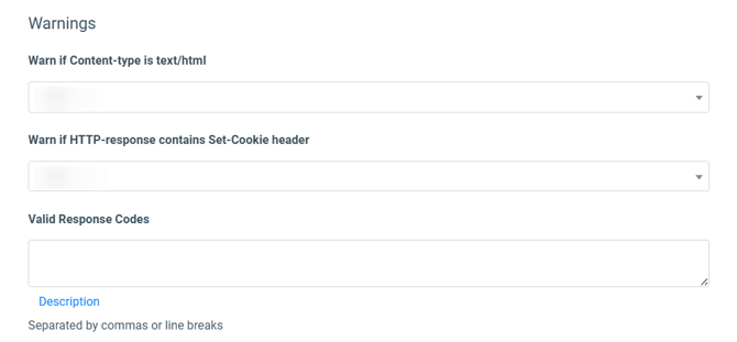 Use case: This option is useful when the system expects a non-HTML response (for example, JSON or plain text) from an endpoint. Receiving a text/HTML response often indicates an error page, redirect, or unexpected web response instead of a valid tracking response. Enabling this warning helps users quickly identify misconfigured URLs, authentication issues, or endpoints returning fallback pages rather than valid data. - Warn if HTTP-response contains Set-Cookie header: Select the option for the system to warn if HTTP-response contains Set-Cookie header.