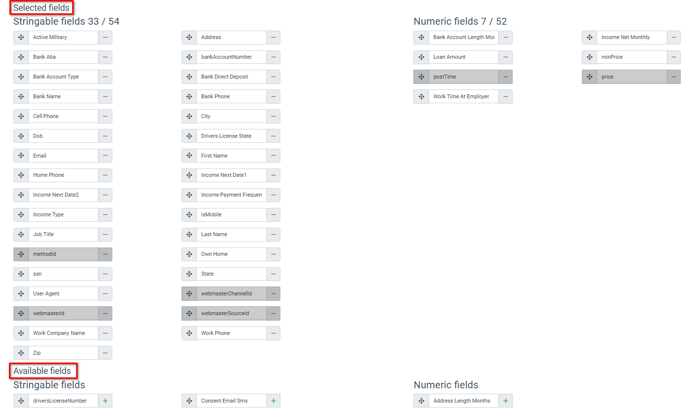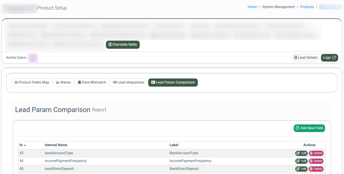 The “Lead Param Comparison” tab allows you to configure the fields that will be available for charting in the Fraud and Anomaly > Data Insights > Lead Parameter Comparison report. Read more in the Knowledge Base article.