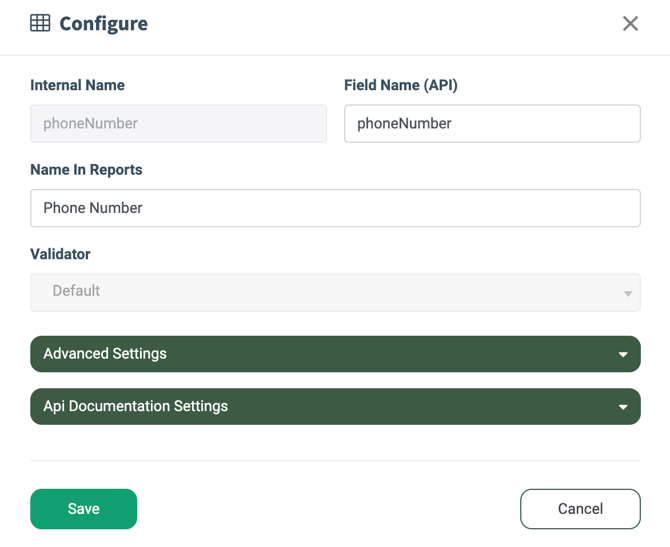 - Field Name (API): Enter the name of the field that will be used as an API parameter and reflected in the API documentation.