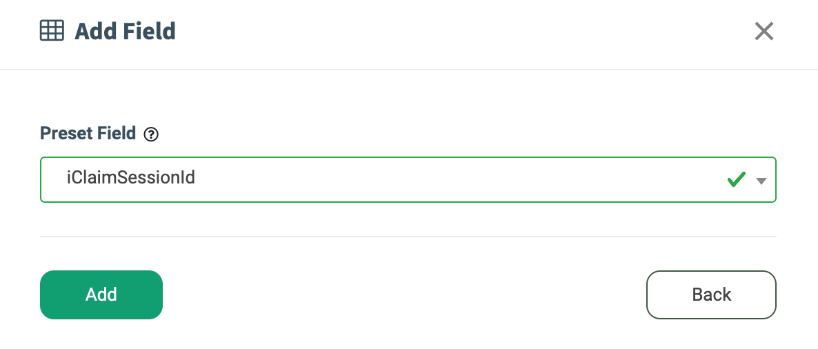 To add special service fields (Trusted Form URL, Jornaya Lead ID, iClaim Session ID, etc.) as extra fields for the Product, click the “Add Field” button and choose the “Add Preset Field” option in the pop-up window.