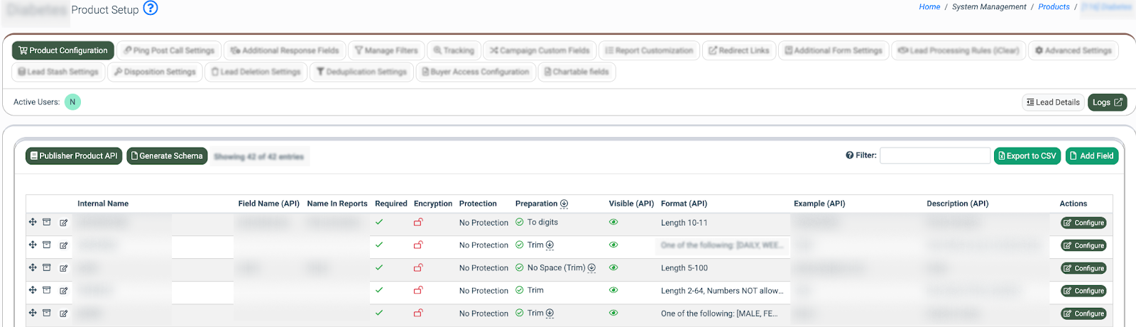 - Post Required (Ping-Post Products only): Define the field requirement settings on Post.