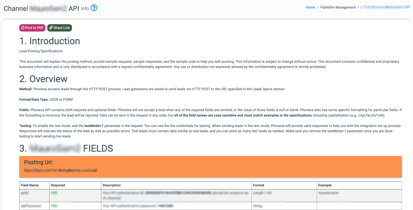 - Response Samples: The examples of responses for leads accepted or rejected by the lead generator.