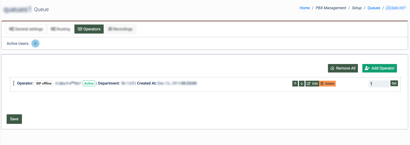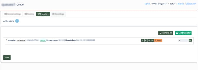 The “Operators” tab allows you to configure and manage the operator’s settings that are attached to the particular queue.